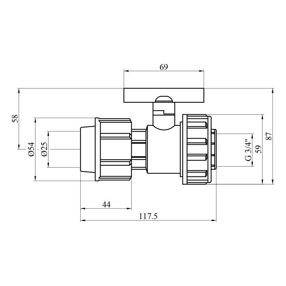 Опис до товару: Кран ПЕ STR 25х3/4" РВ
