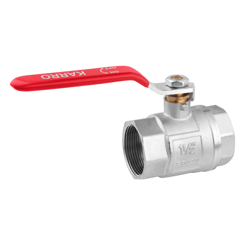 Кран кульовий Karro "Standart+" 1 1/2" ВВ PN40 ручка, нікельований — це надійний запірний пристрій, призначений для перекриття потоку води в системах водопостачання та опалення. Кульовий механізм забезпечує швидке і герметичне закриття потоку, а зручна ручка-важіль дозволяє легко і точно керувати подачею води. Нікельоване покриття корпусу захищає виріб від корозії та збільшує термін його служби.