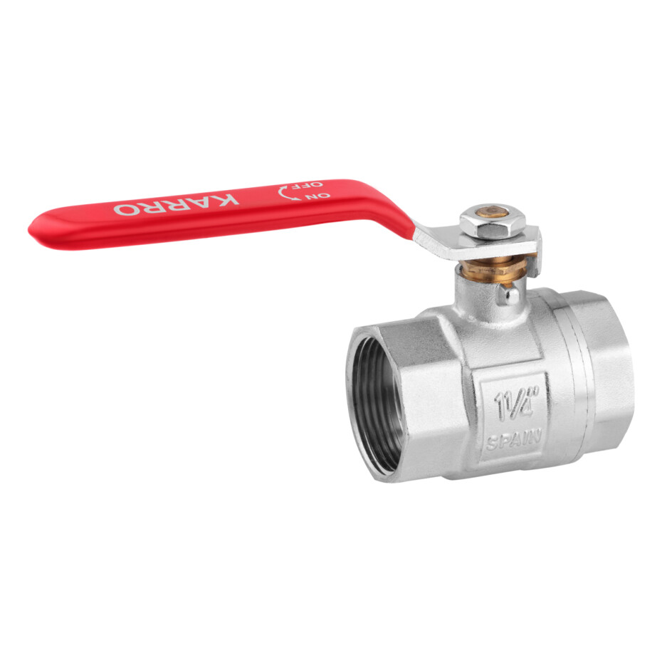 Кран кульовий Karro "Standart+" 1 1/4" ВВ PN40 ручка, нікельований — це надійний запірний пристрій, призначений для перекриття потоку води в системах водопостачання та опалення. Кульовий механізм забезпечує швидке і герметичне закриття потоку, а зручна ручка-важіль дозволяє легко і точно керувати подачею води. Нікельоване покриття корпусу захищає виріб від корозії та збільшує термін його служби.