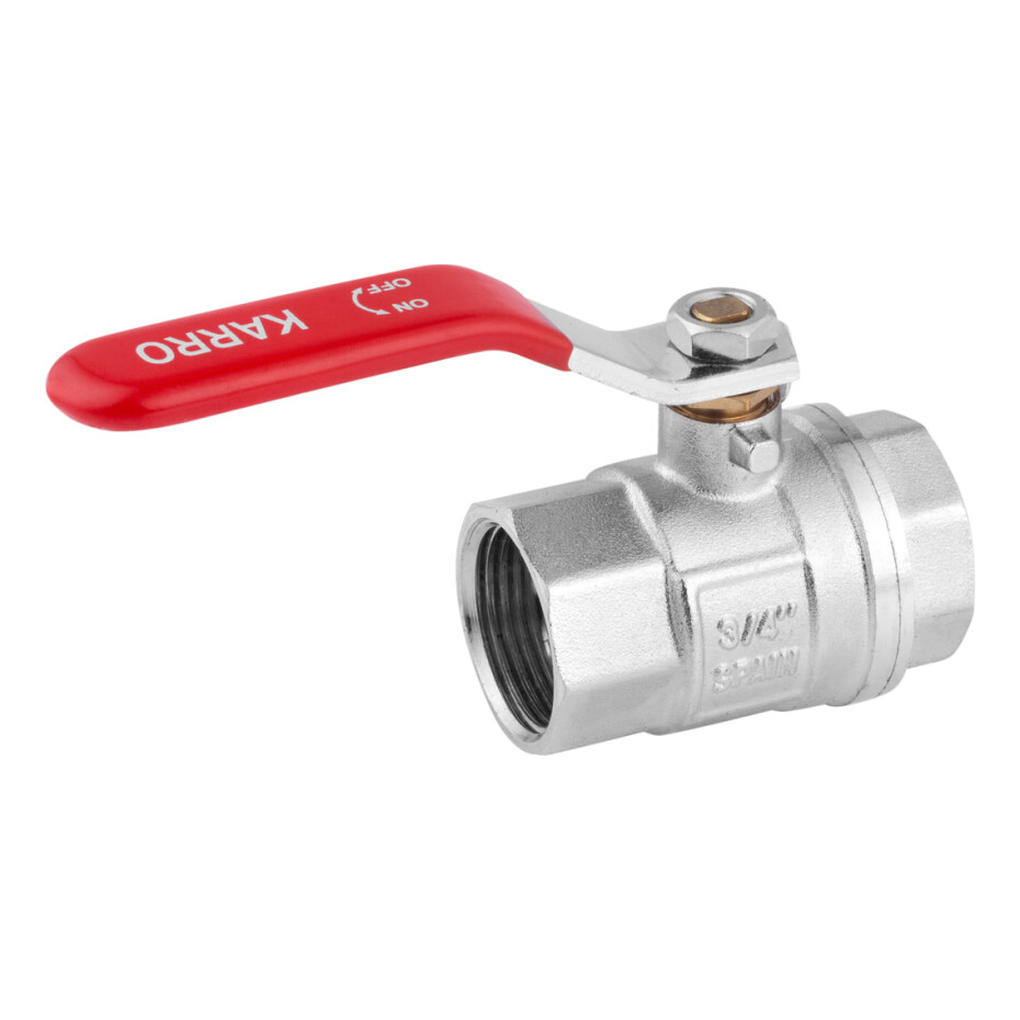 Кран кульовий Karro "Standart+" 3/4" ВВ PN40 ручка, нікельований — це надійний запірний пристрій, призначений для перекриття потоку води в системах водопостачання та опалення. Кульовий механізм забезпечує швидке і герметичне закриття потоку, а зручна ручка-важіль дозволяє легко і точно керувати подачею води. Нікельоване покриття корпусу захищає виріб від корозії та збільшує термін його служби.