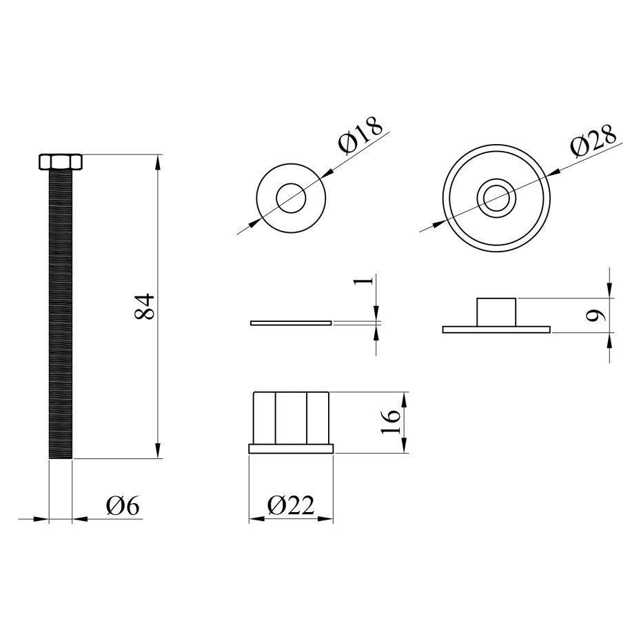 Кріплення бачка до унітаза Direct 84 мм (оцинковане) — комплект для надійної фіксації зливного бачка до чаші унітаза зі стандартною міжосьовою відстанню 84 мм.