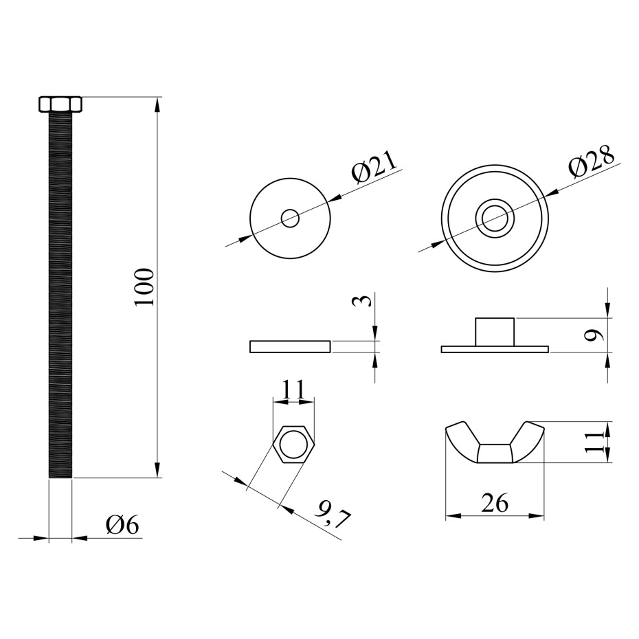 Кріплення бачка до унітаза Direct 100 мм (нержавіюча сталь/пластик) — комплект для надійної фіксації зливного бачка до унітаза зі стандартною міжосьовою відстанню 100 мм.