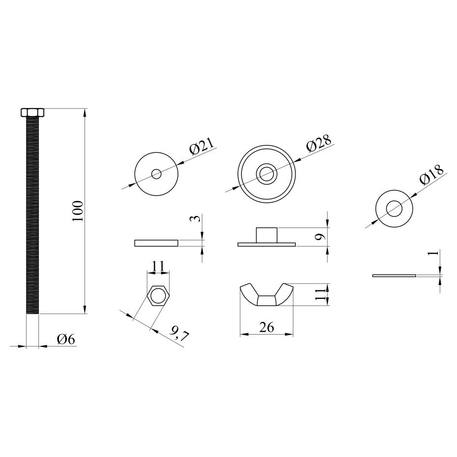 Кріпильні болти та притискні елементи виготовлені з нержавіючої сталі, що забезпечує стійкість до корозії та тривалий термін служби. У комплект також входять ущільнювачі, а замість стандартних пластикових шайб використовуються круглі притискні елементи (кружки) з нержавіючої сталі, які рівномірно розподіляють навантаження і підвищують надійність з'єднання.