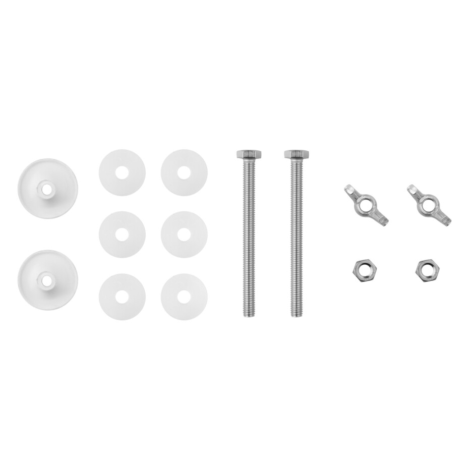 Комплект забезпечує щільне з'єднання бачка з чашею унітаза, запобігає люфту і протіканню. Підходить для більшості стандартних моделей унітазів з відстанню між кріпильними отворами 80 мм.
