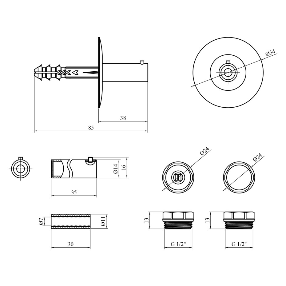 Габарити кріплення становлять 54х54х85 мм, що робить його зручним у монтажі та сумісним з більшістю водяних рушникосушників Kroner діаметром 16 мм.