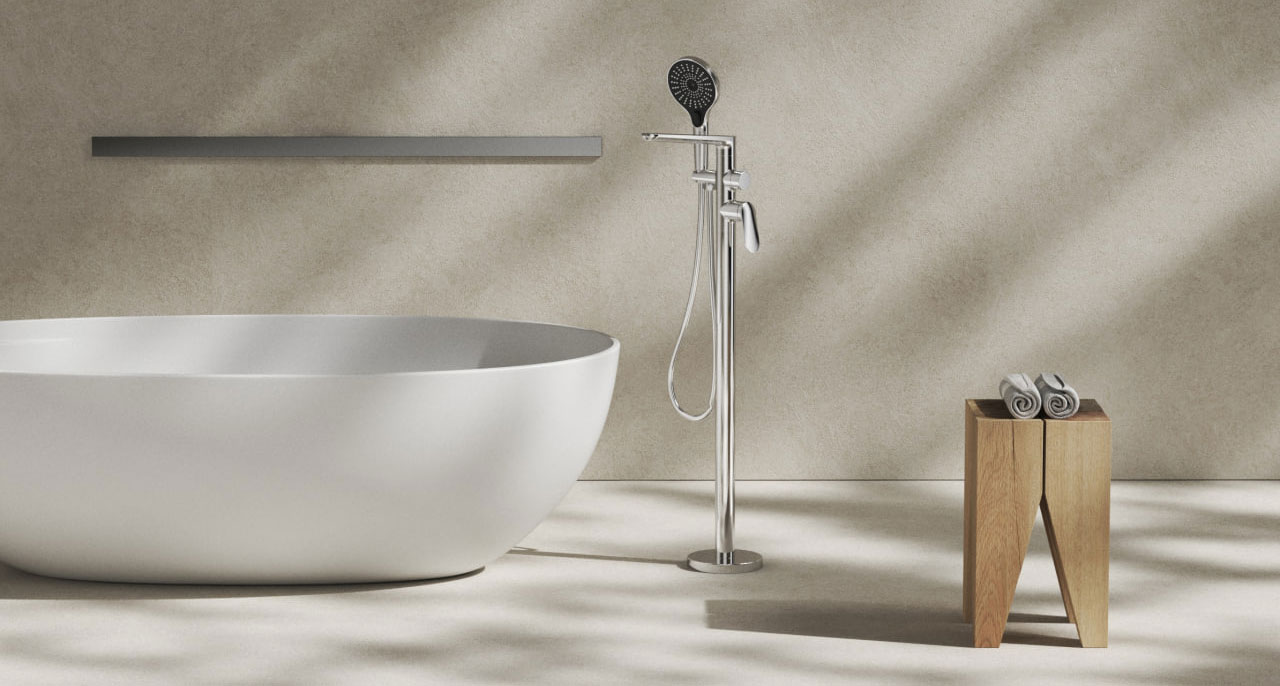 Окремої уваги заслуговують підлогові змішувачі для ванни — тренд преміальних інтер’єрів.