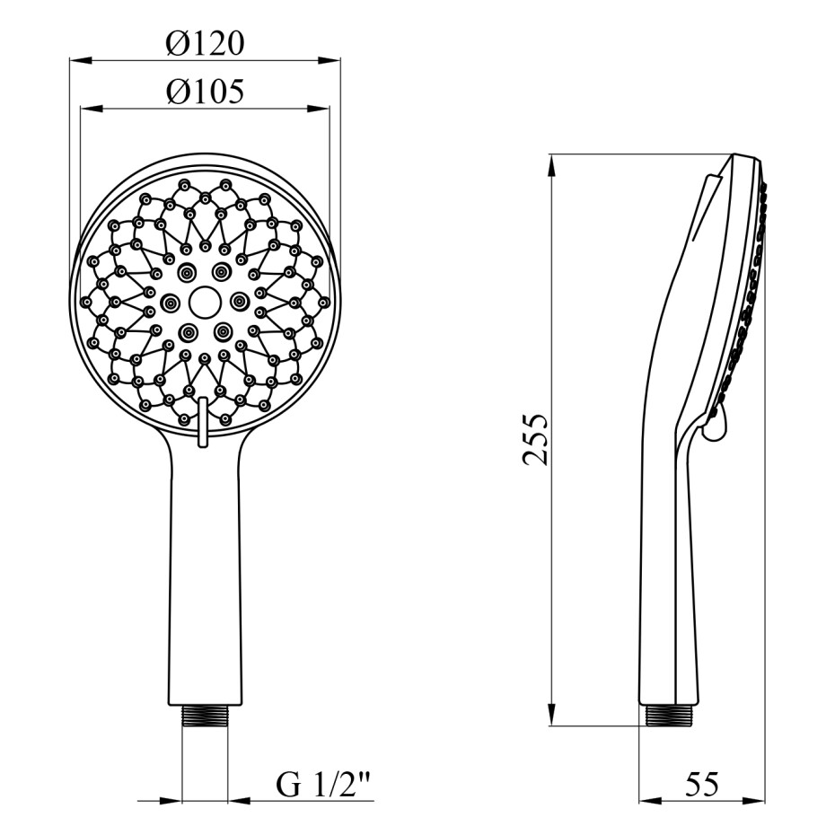 Виготовлена з ABS-пластику з двошаровим нікель-хромовим покриттям, стійким до подряпин та корозії. Підключення 1/2", форма кругла.