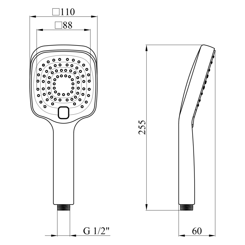 ABS-пластик з двошаровим нікель-хромовим покриттям, підключення 1/2", форма квадратна.