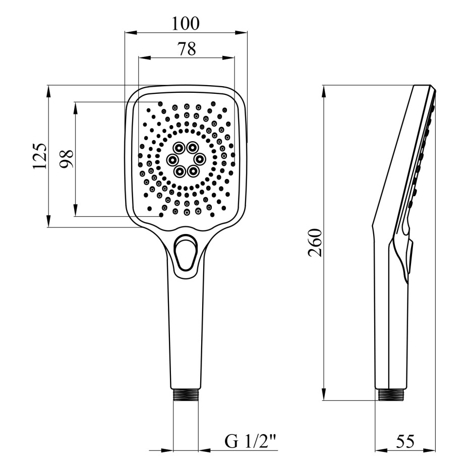 Діаметр ручної лійки, мм: 120х100