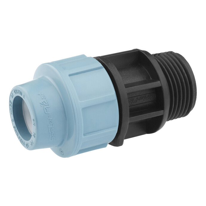 Муфта ПЕ SantehPlast 20x1" РНЗ— це з'єднувальний фітинг для поліетиленових труб, що дає змогу надійно з'єднати труби з різними діаметрами. Один кінець розрахований на труби діаметром 20 мм, а інший — на труби з дюймовим з'єднанням 1", виконаним із зовнішнім різьбленням (РЗ).