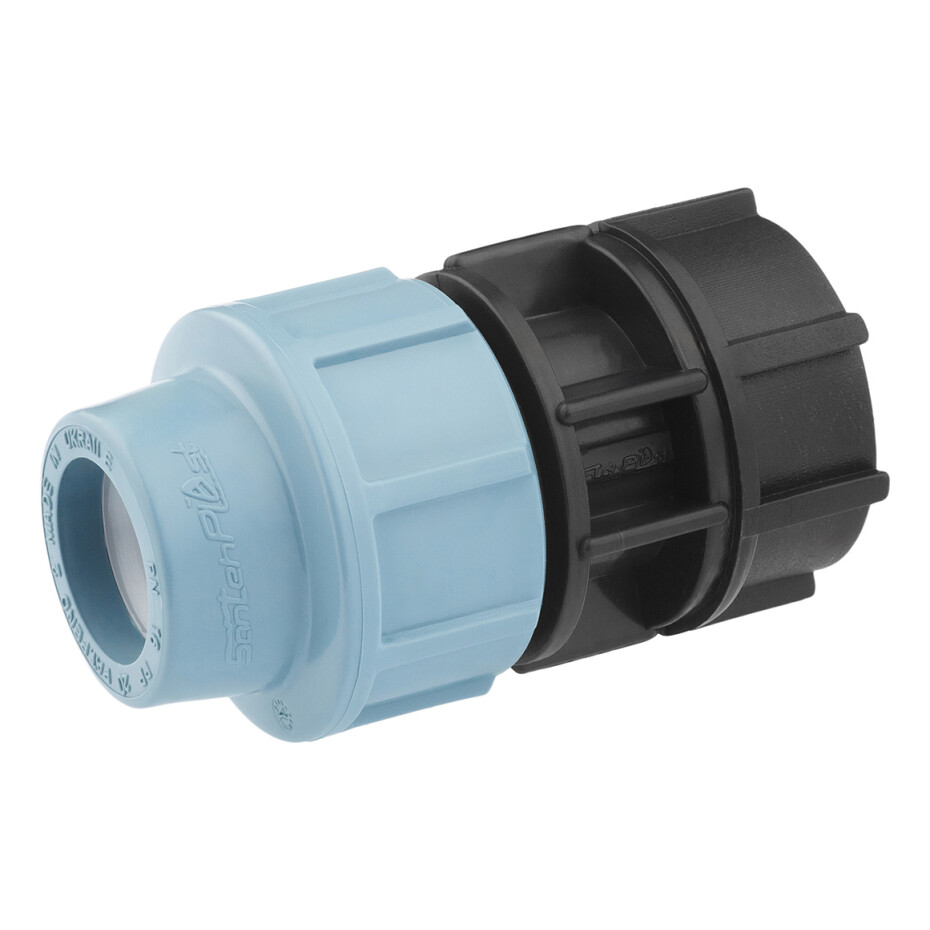 Муфта ПЕ SantehPlast 20x3/4" РВ — це з'єднувальний фітинг для поліетиленових труб, що дає змогу надійно з'єднати труби з різними діаметрами. Один кінець розрахований на труби діаметром 20 мм, а інший — на труби з дюймовим з'єднанням 3/4", виконаним із внутрішнім різьбленням (РВ).