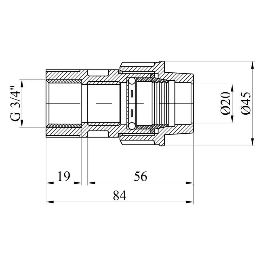 Конфігурація: з'єднання труб з діаметрами 20 мм і 3/4".