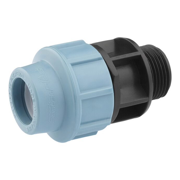 Муфта ПЕ SantehPlast 25x1" РЗ — це з'єднувальний фітинг для поліетиленових труб, що дає змогу надійно з'єднати труби з різними діаметрами. Один кінець розрахований на труби діаметром 25 мм, а інший — на труби з дюймовим з'єднанням 1", виконаним із зовнішнім різьбленням (РЗ).