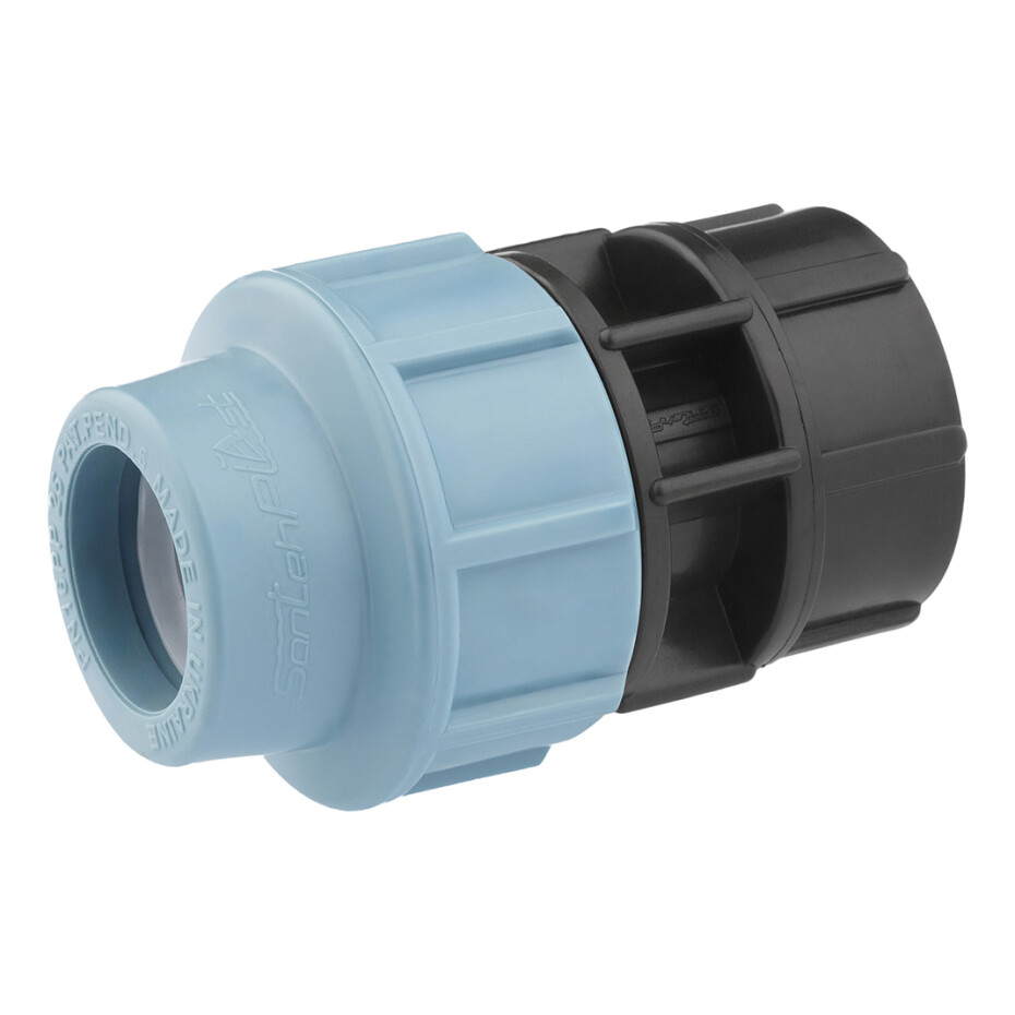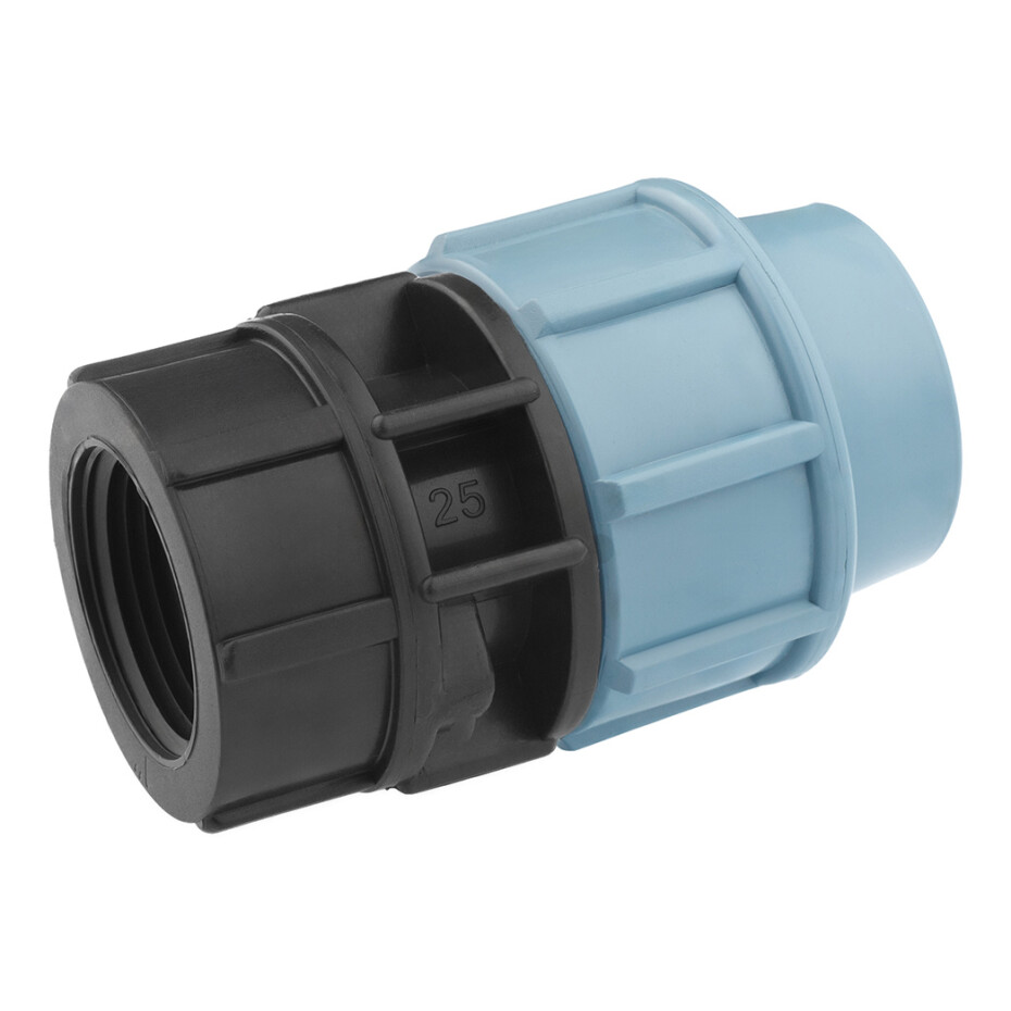 Муфта ПЕ SantehPlast 25х1" РВ — це з'єднувальний фітинг для поліетиленових труб, що дає змогу надійно з'єднати труби з різними діаметрами. Один кінець розрахований на труби діаметром 25 мм, а інший — на труби з дюймовим з'єднанням 1", виконаним із внутрішнім різьбленням (РВ).