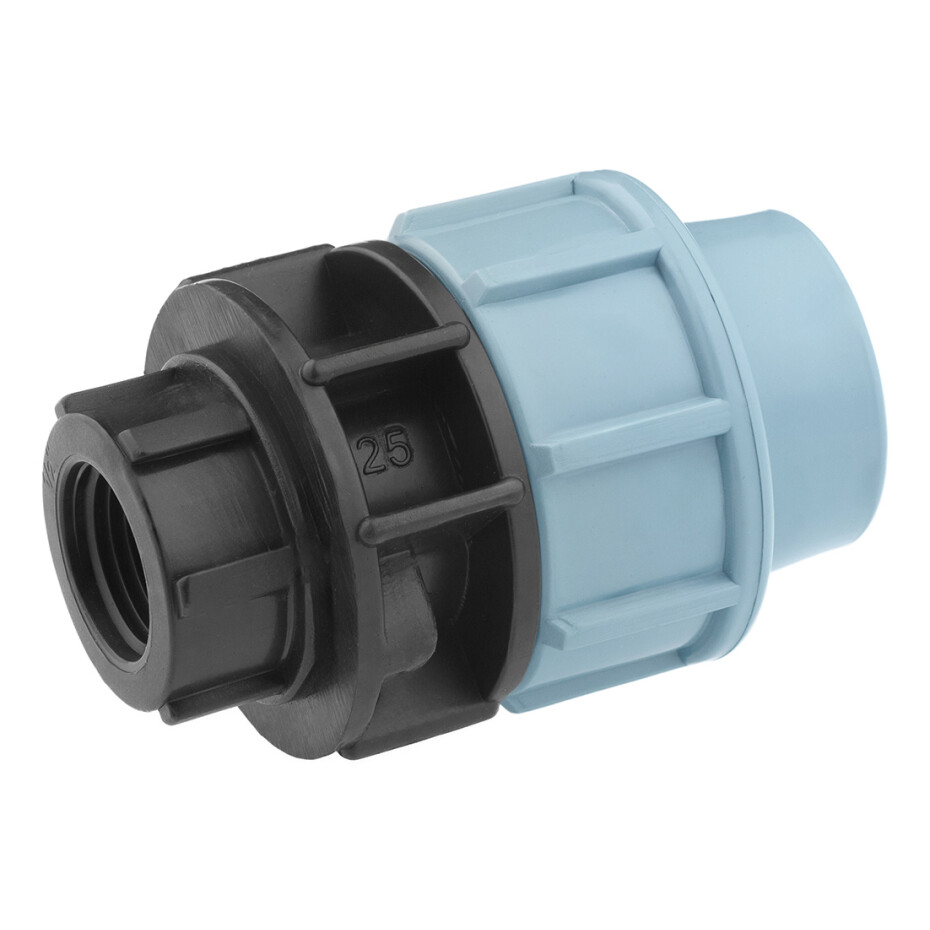 Муфта ПЕ SantehPlast 25х1/2" РВ — це з'єднувальний фітинг для поліетиленових труб, що дає змогу надійно з'єднати труби з різними діаметрами. Один кінець розрахований на труби діаметром 25 мм, а інший — на труби з дюймовим з'єднанням 1/2", виконаним із внутрішнім різьбленням (РВ).
