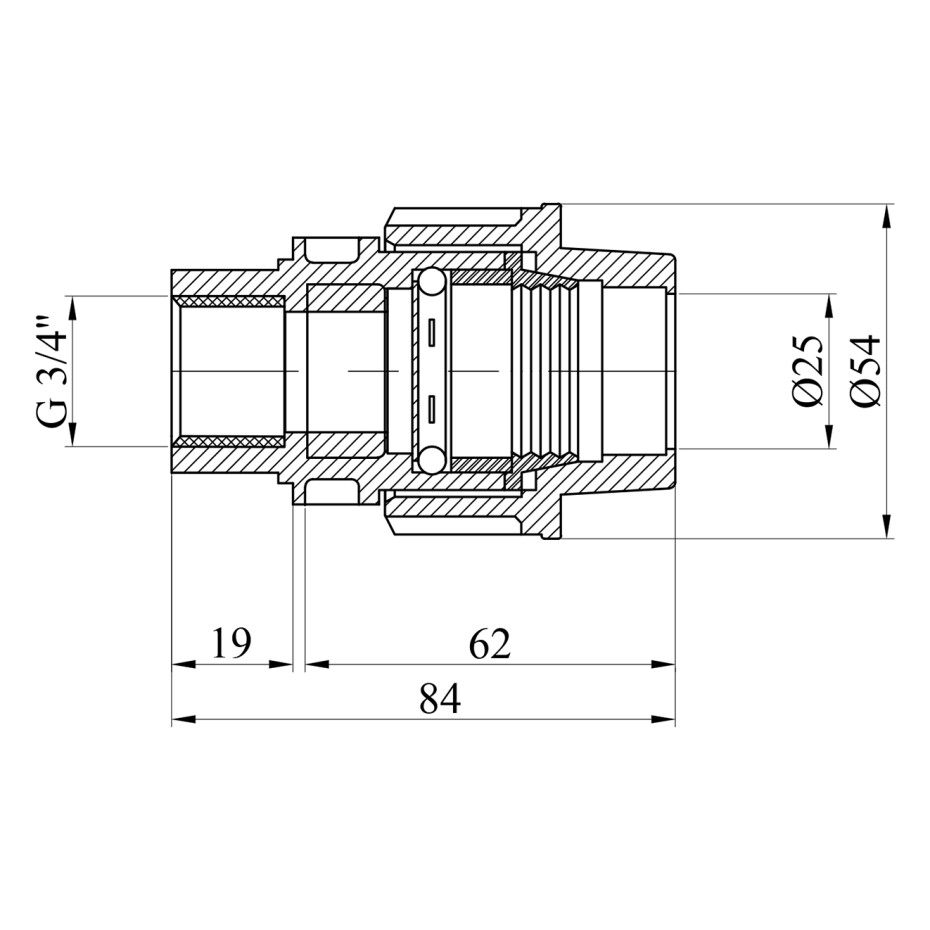Конфігурація: з'єднання труб з діаметрами 25 мм і 3/4".