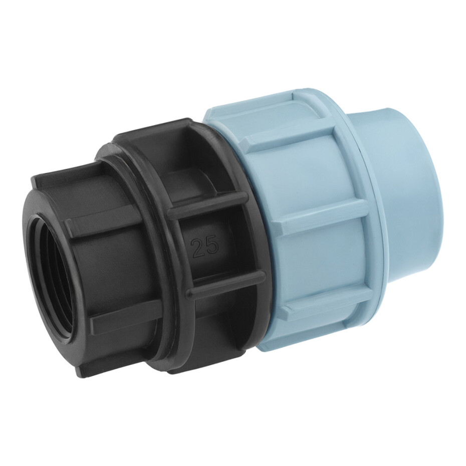 Муфта ПЕ SantehPlast 25х3/4" РВ — це з'єднувальний фітинг для поліетиленових труб, що дає змогу надійно з'єднати труби з різними діаметрами. Один кінець розрахований на труби діаметром 25 мм, а інший — на труби з дюймовим з'єднанням 3/4", виконаним із внутрішнім різьбленням (РВ).
