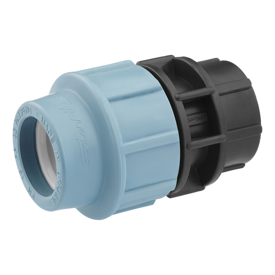 Муфта ПЕ SantehPlast 32х1" РВ — це з'єднувальний фітинг для поліетиленових труб, що дає змогу надійно з'єднати труби з різними діаметрами. Один кінець розрахований на труби діаметром 32 мм, а інший — на труби з дюймовим з'єднанням 1", виконаним із внутрішнім різьбленням (РВ).
