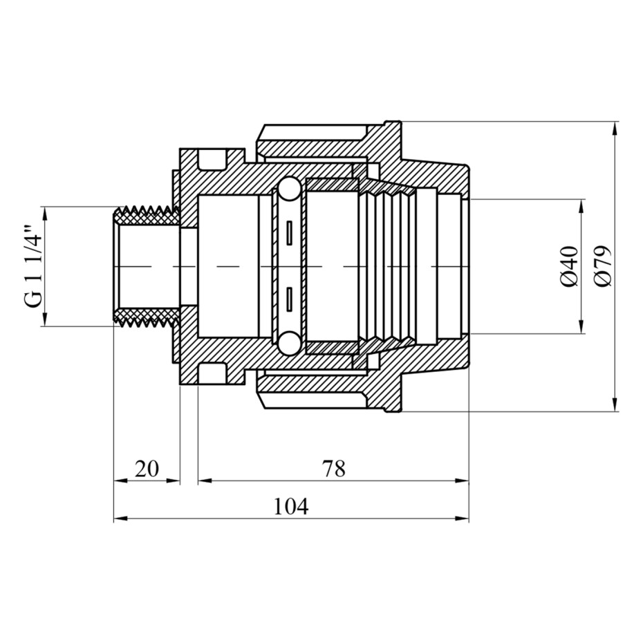 Конфігурація: з'єднання труб з діаметрами 40 мм і 1 1/4".