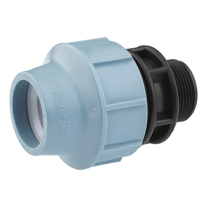 Муфта ПЕ SantehPlast 40x1 1/4" РЗ — це з'єднувальний фітинг для поліетиленових труб, що дає змогу надійно з'єднати труби з різними діаметрами. Один кінець розрахований на труби діаметром 40 мм, а інший — на труби з дюймовим з'єднанням 1 1/4", виконаним із зовнішнім різьбленням (РЗ).