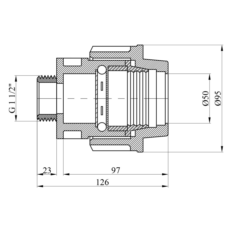 Конфігурація: з'єднання труб з діаметрами 50 мм і 1 1/2".