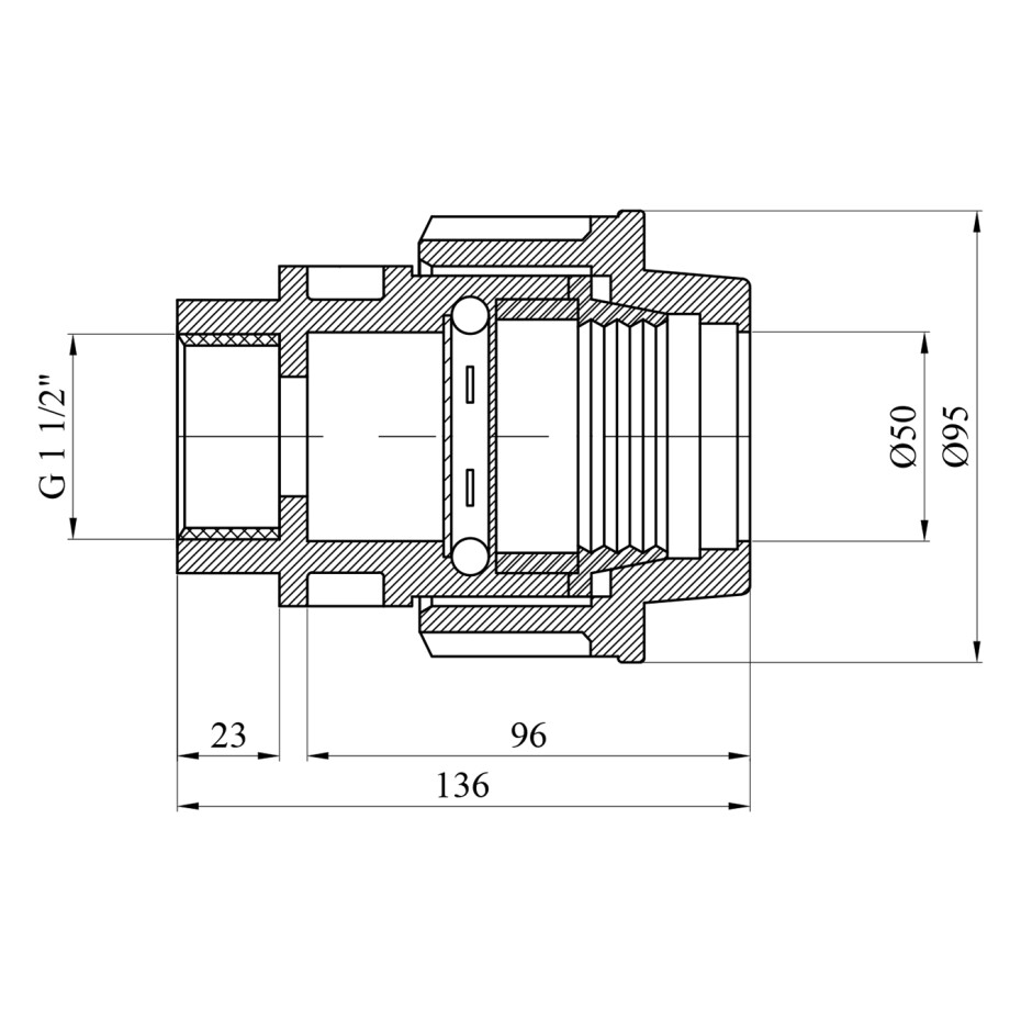 Конфігурація: з'єднання труб з діаметрами 50 мм і 1 1/2".
