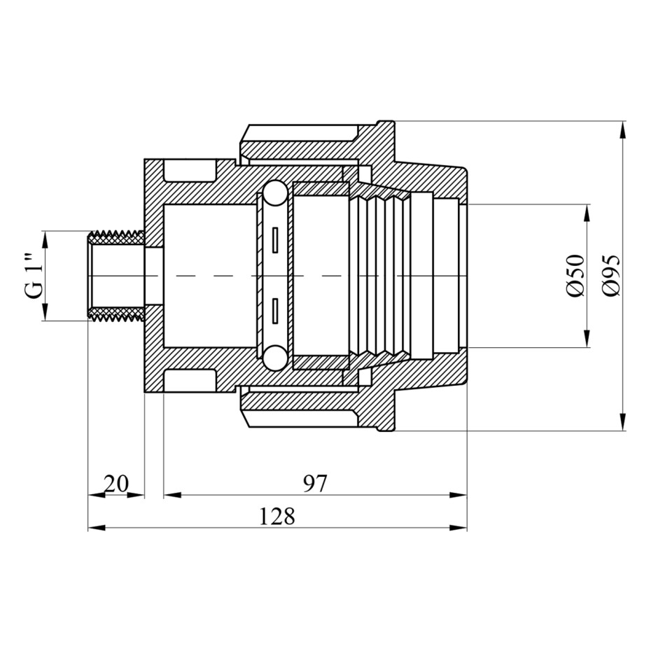 Конфігурація: з'єднання труб з діаметрами 50 мм і 1".