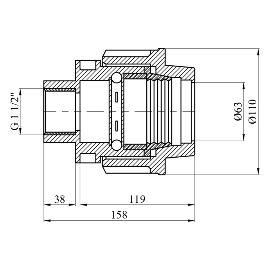 Конфігурація: з'єднання труб з діаметрами 63 мм і 1 1/2".