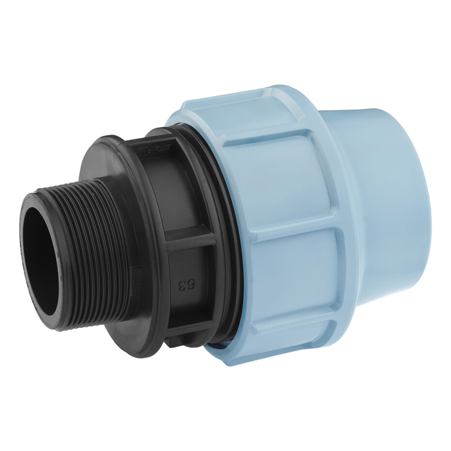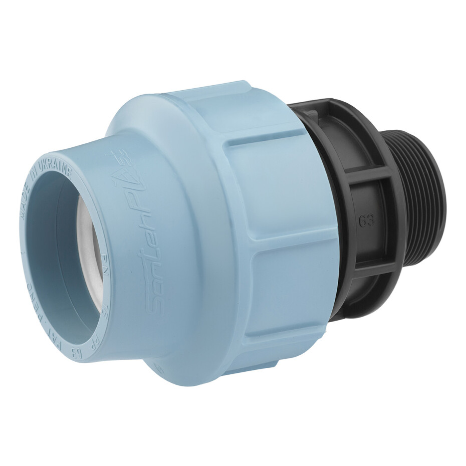 Муфта ПЕ SantehPlast 63x2" РЗ — це з'єднувальний фітинг для поліетиленових труб, що дає змогу надійно з'єднати труби з різними діаметрами. Один кінець розрахований на труби діаметром 63 мм, а інший — на труби з дюймовим з'єднанням 2", виконаним із зовнішнім різьбленням (РЗ).