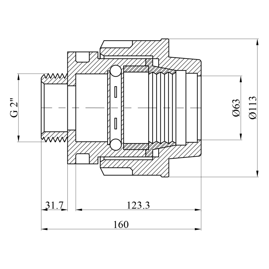 Конфігурація: з'єднання труб з діаметрами 63 мм і 2".