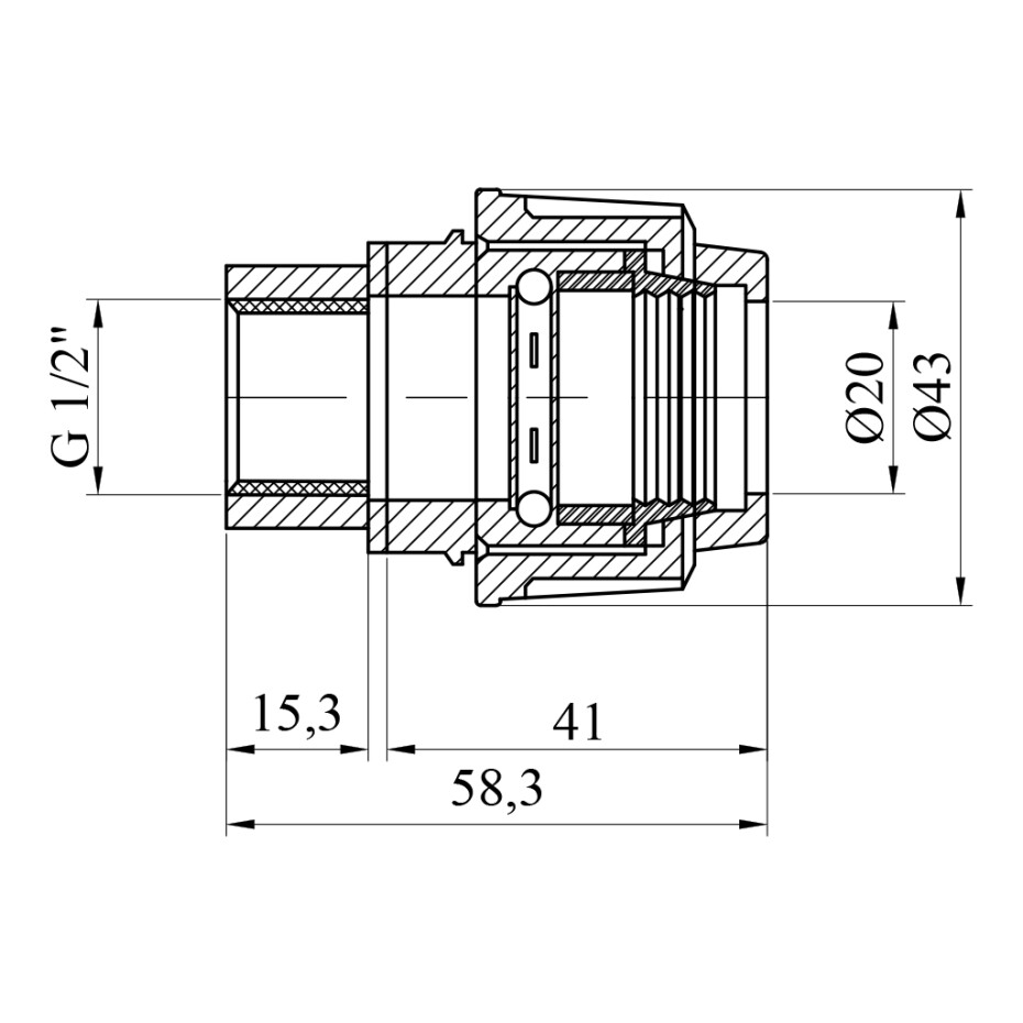 Тип з'єднання: компресійне (обтискне) для поліетиленової труби та різьбове внутрішнє для підключення до інших елементів. Монтаж не потребує зварювального обладнання.