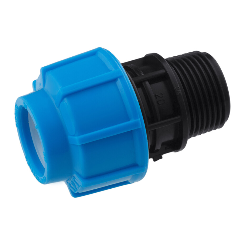 Надійність і герметичність: компресійне з'єднання надійно фіксує ПЕ трубу і забезпечує герметичність, а якісне зовнішнє різьблення за правильного ущільнення також є дуже надійним.