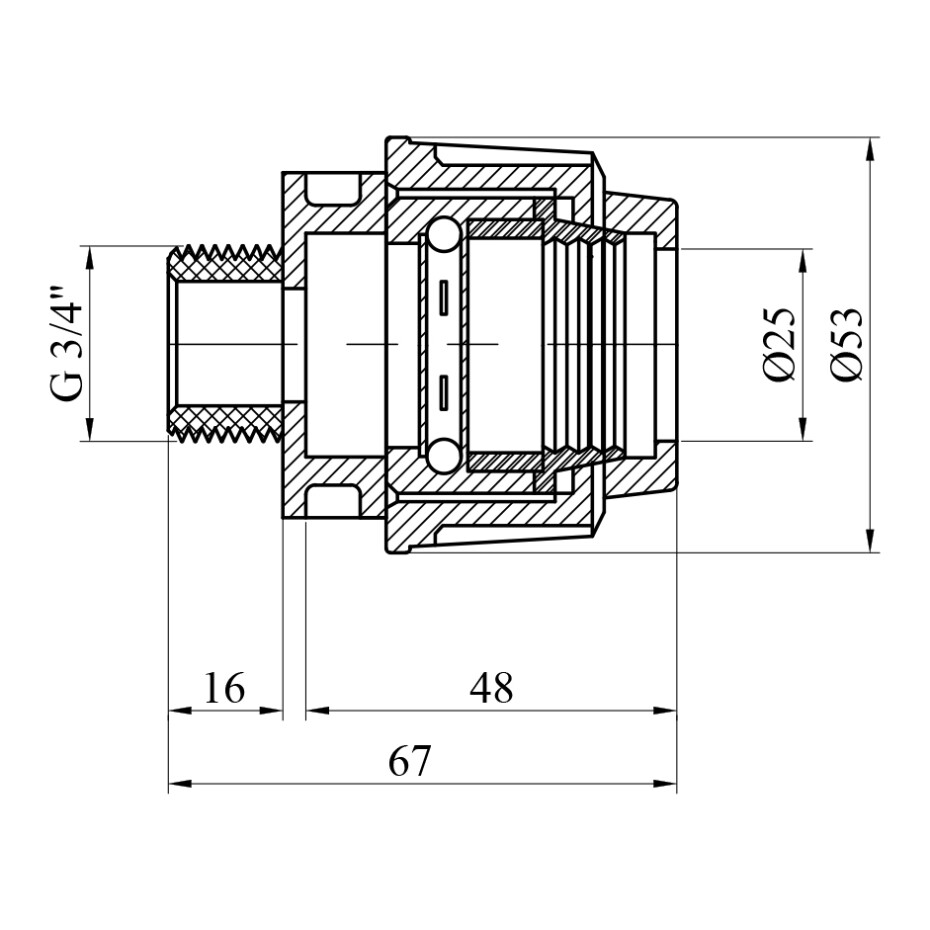 Надійність і герметичність: компресійне з'єднання надійно фіксує ПЕ трубу і забезпечує герметичність, а якісне зовнішнє різьблення за правильного ущільнення також є дуже надійним.