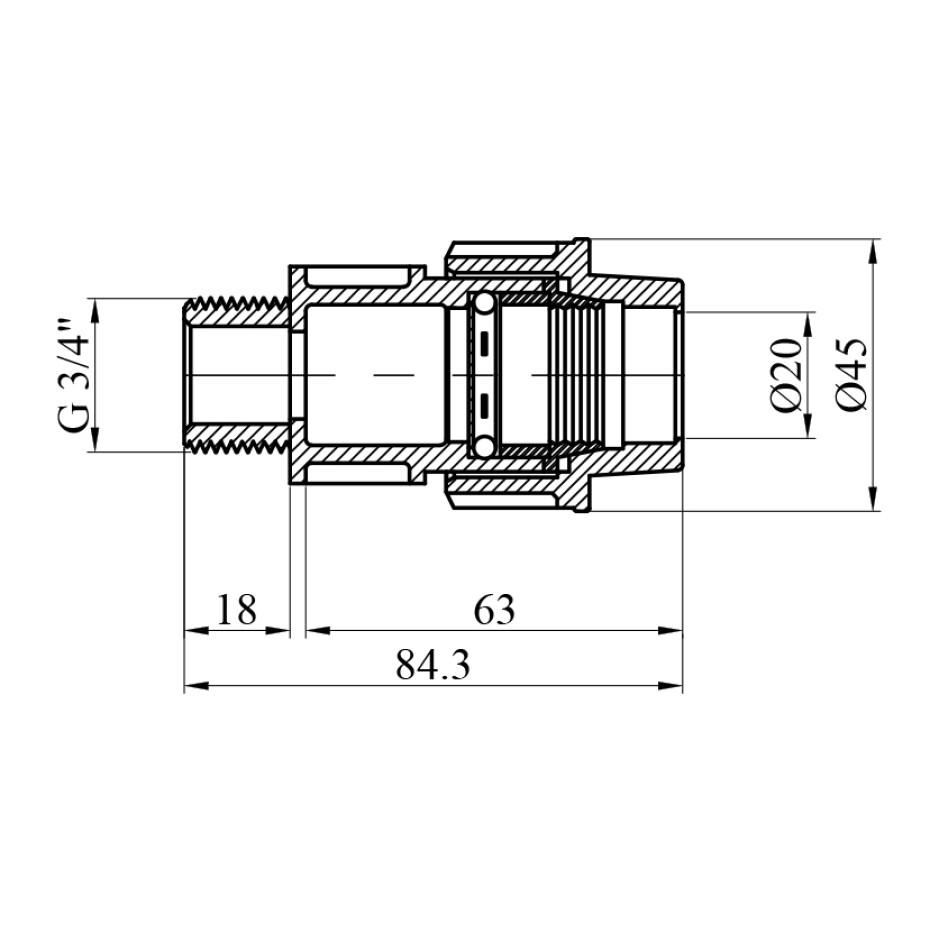 Різьбове з'єднання: 3/4" (зовнішня різьба).