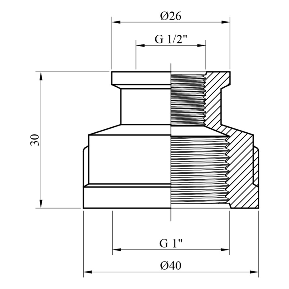 Застосовується в системах водопостачання, опалення та технологічних трубопроводах, де потрібен перехід між трубами різного діаметра з внутрішнім різьбленням.