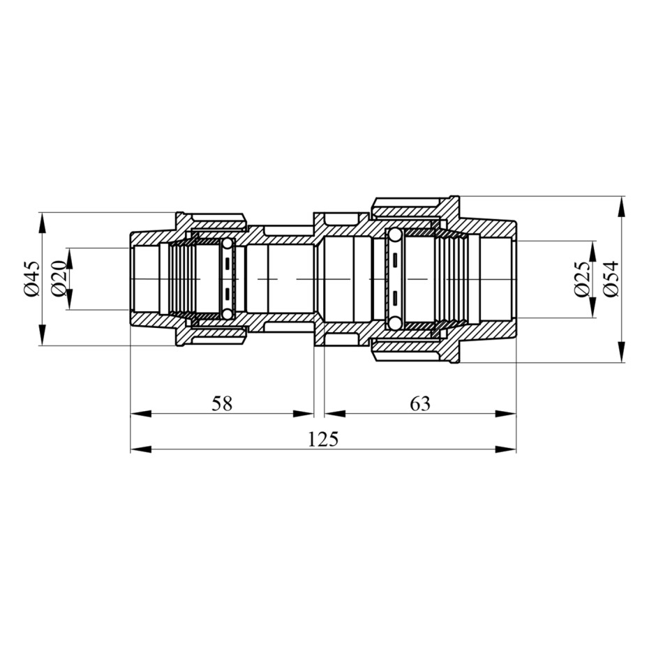 Робоча температура до 40 °C робить муфту оптимальним вибором для холодного водопостачання. Вона стійка до корозії, механічних навантажень і впливу зовнішнього середовища, що гарантує довгий термін служби. Діаметр підключення 20x25 мм підходить для більшості інженерних систем.