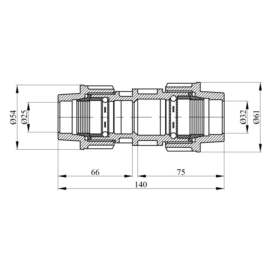 Робоча температура до 40 °C робить муфту оптимальним вибором для холодного водопостачання. Вона стійка до корозії, механічних навантажень і впливу зовнішнього середовища, що гарантує довгий термін служби. Діаметр підключення 25х32 мм підходить для більшості інженерних систем.