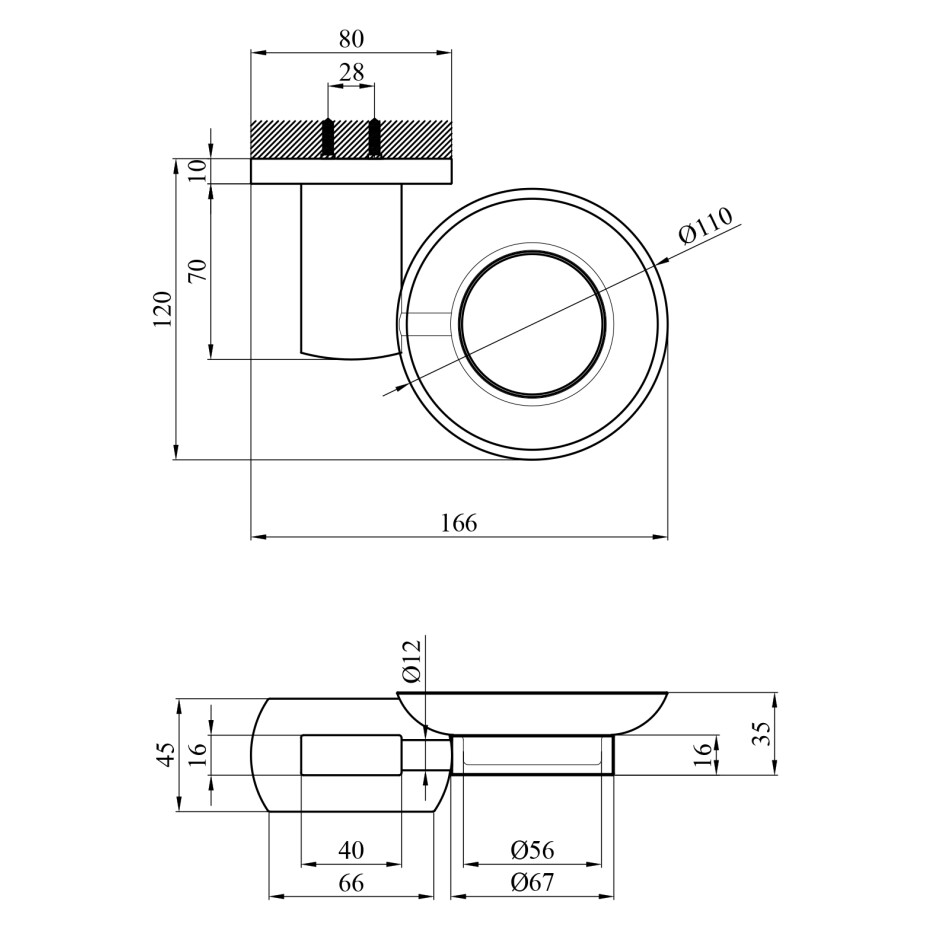 Габарити виробу (ВхШхГ), мм: 45х166х120