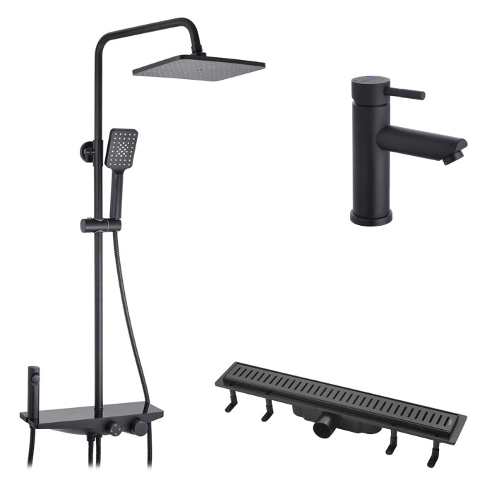 Опис до товару: Набор 3 в 1 душова система Kroner Armada-SCH066 + змішувач Edelstahl Klassisch-SCH010 + трап лінійний Harz SCH60 Sektion Schwarz