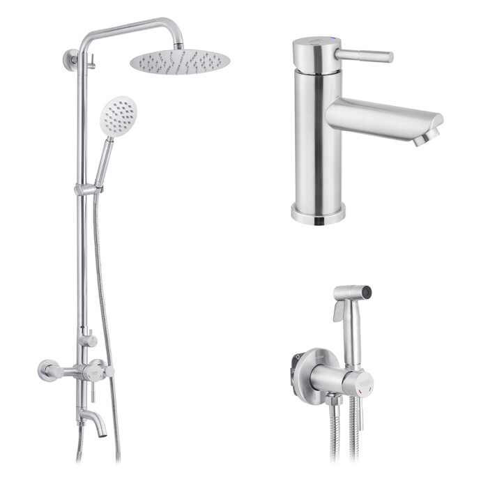 Набор 3 в 1 душова система Kroner Edelstahl Klassisch-ESG063 + змішувач Edelstahl Klassisch-ESG010 + змішувач Edelstahl Klassisch -ESG053