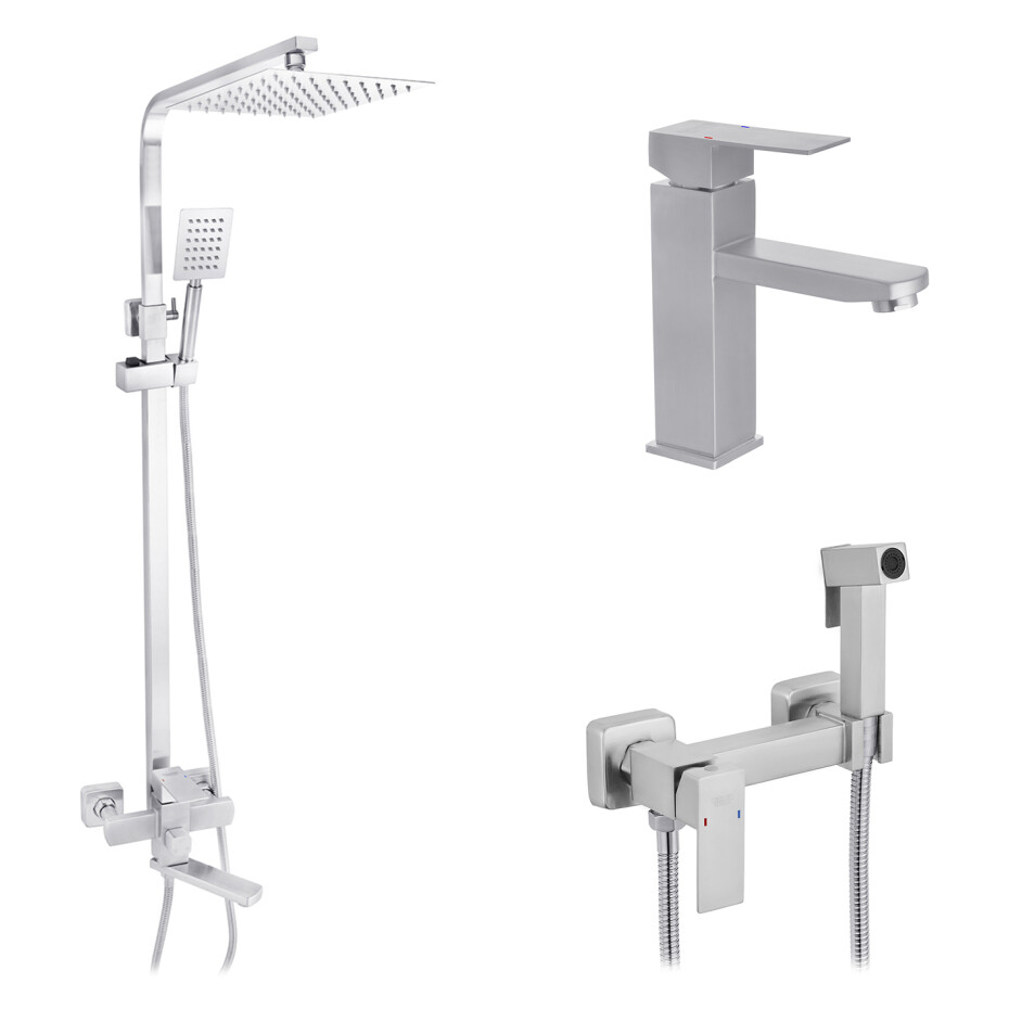 Набор 3 в 1 душова система Kroner Edelstahl Kubus-ESG063 + змішувач Edelstahl Kubus-ESG010 + змішувач Kroner Edelstahl Kubus-ESG052