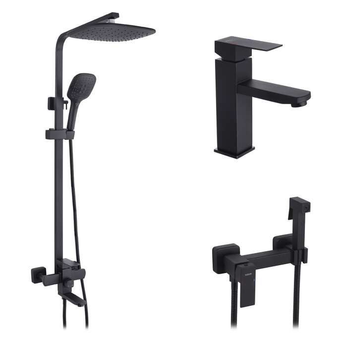 Набор 3 в 1 душова система Kroner Edelstahl Kubus-SCH063 + змішувач Edelstahl Kubus-SCH010 + змішувач Edelstahl Kubus-SCH052