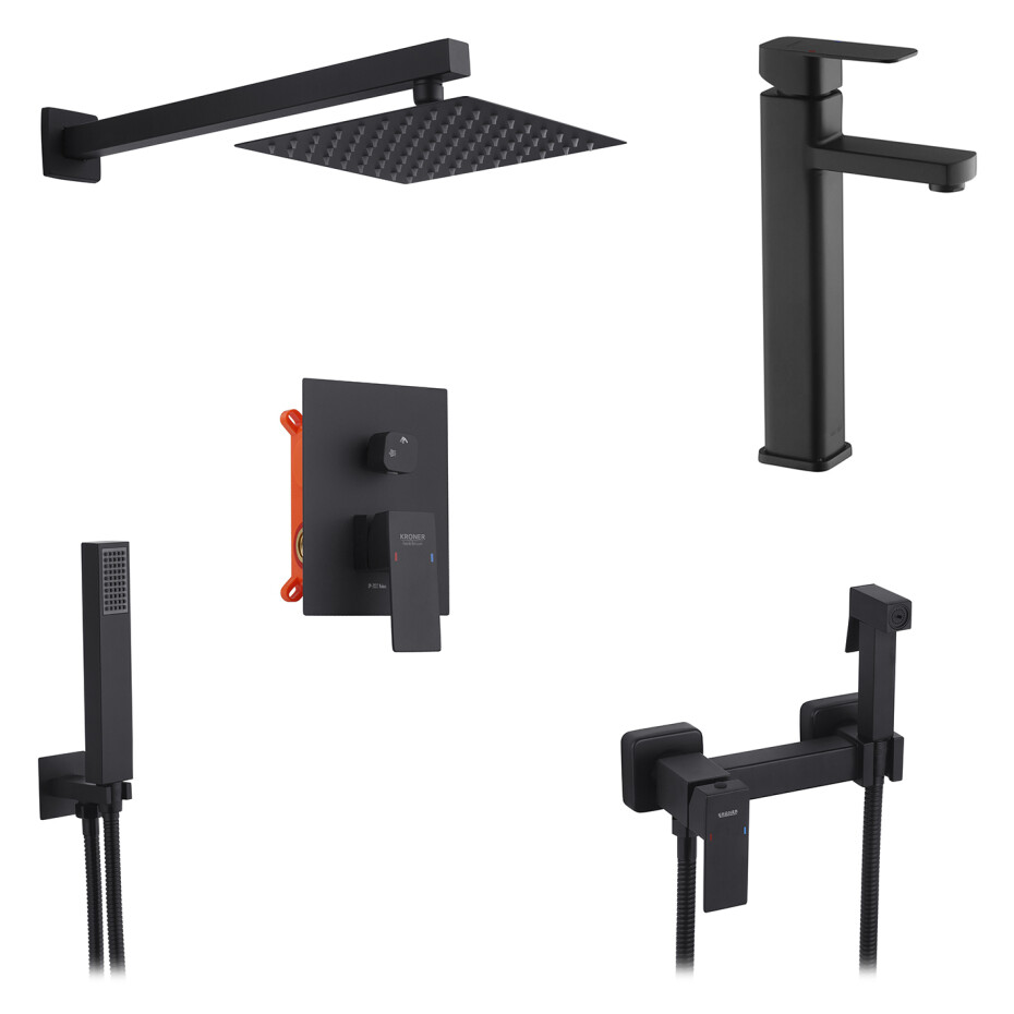 Набор 3 в 1 душова система Kroner Edelstahl Kubus-SCH082 + змішувач Edelstahl Kubus-SCH010-3 + змішувач Edelstahl Kubus-SCH052