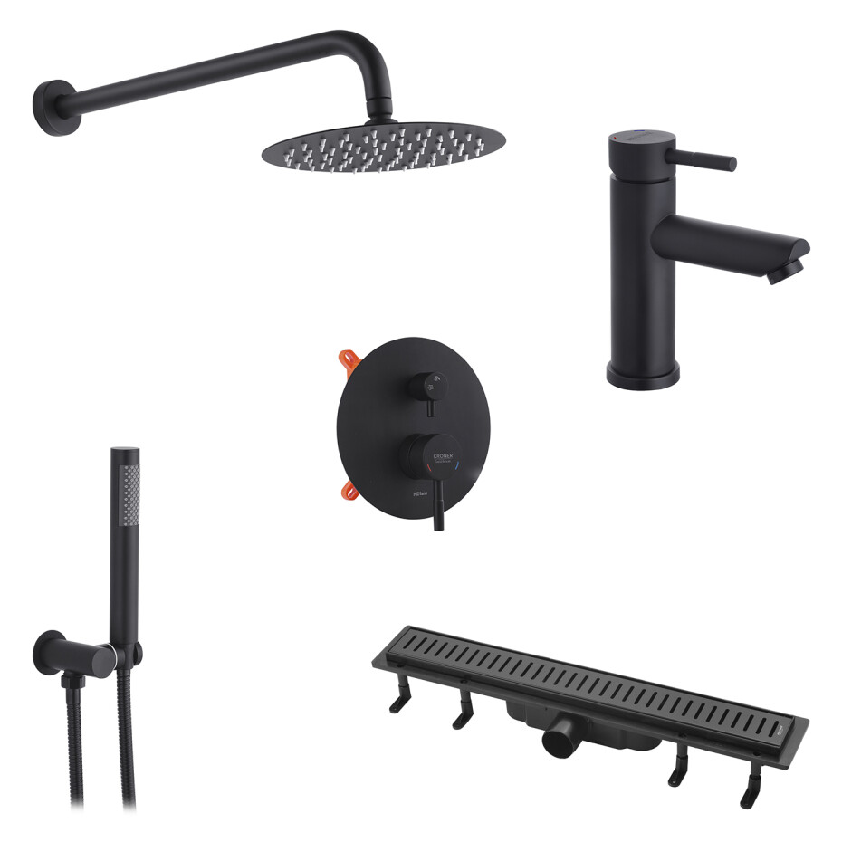 Набор 3 в 1 душова система прихованого монтажу Kroner Edelstahl Klassisch-SCH082 + змішувач Edelstahl Klassisch-SCH010 + трап лінійний Harz SCH60 Sektion Schwarz