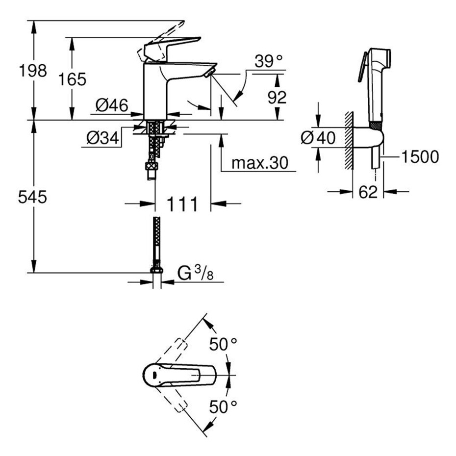 Опис до товару: Набір для гігієнічного душу зі змішувачем Grohe QuickFix Start S-Size 231232433