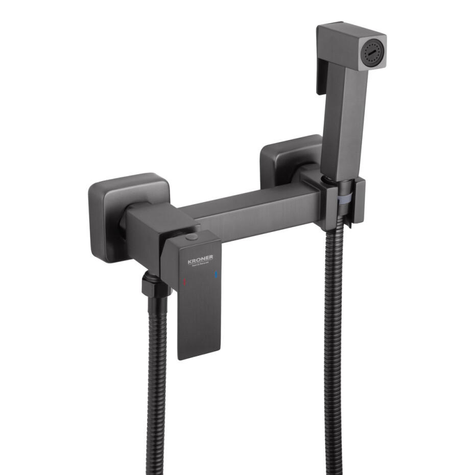 Набір для гігієнічного душу зі змішувачем Kroner KRP Edelstahl Kubus - PVD052 (графітовий) — стильне рішення для сучасної ванної кімнати з акцентом на практичність і довговічність.