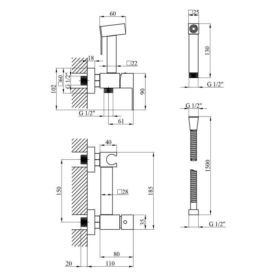 Одноважільне управління з керамічним картриджем 25 мм дозволяє точно і плавно регулювати температуру і напір води. У комплект входить зручна гігієнічна лійка і шланг довжиною 1500 мм (підключення 1/2”), що робить використання максимально комфортним.