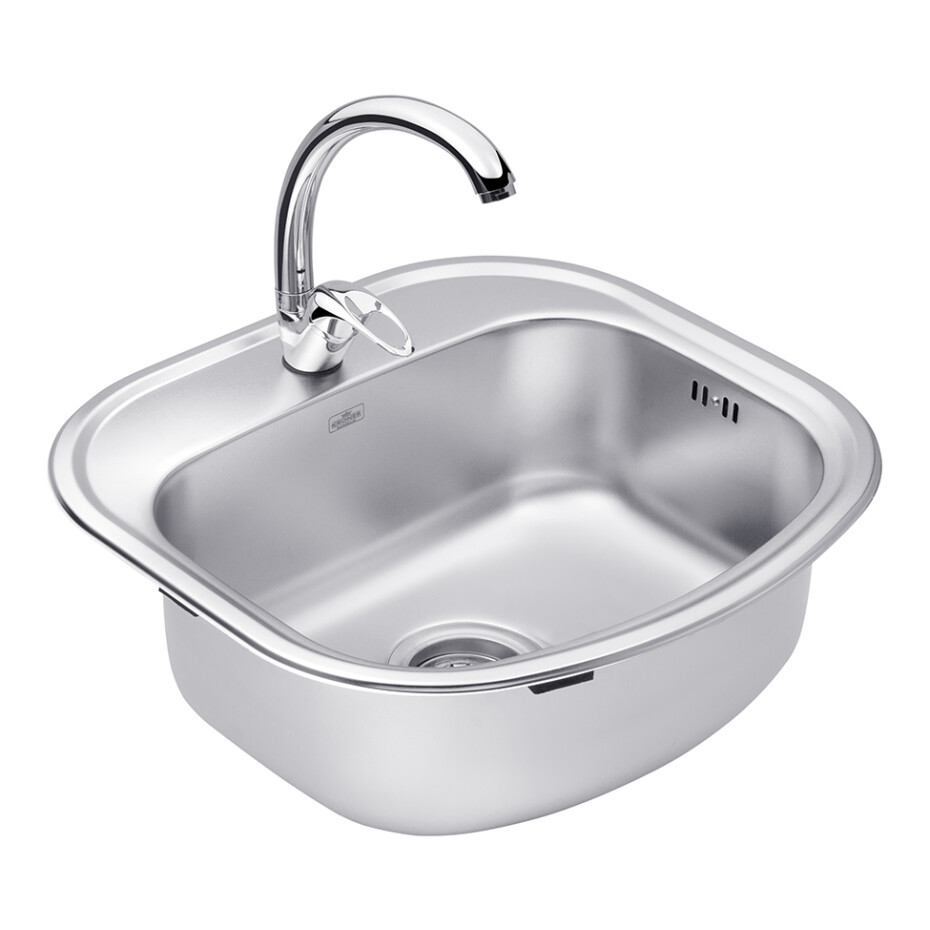 Комплектація: Мийка, змішувач, сифон, злив-перелив, кошиковий вентиль, стрічка ущільнююча, кріплення.