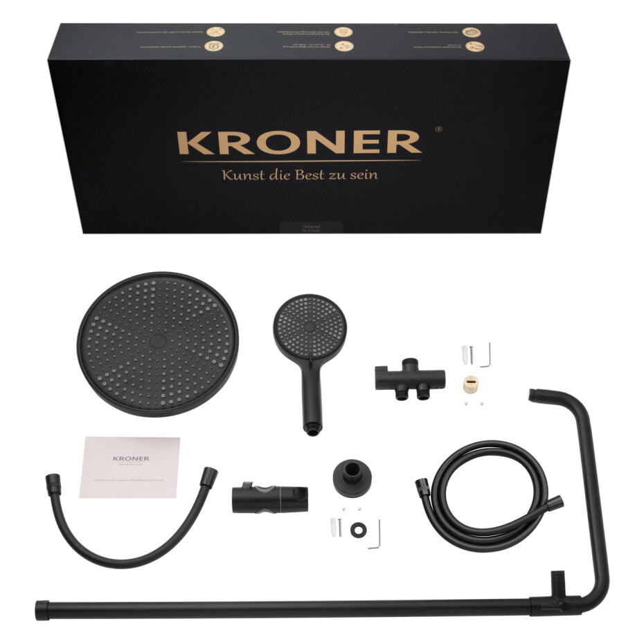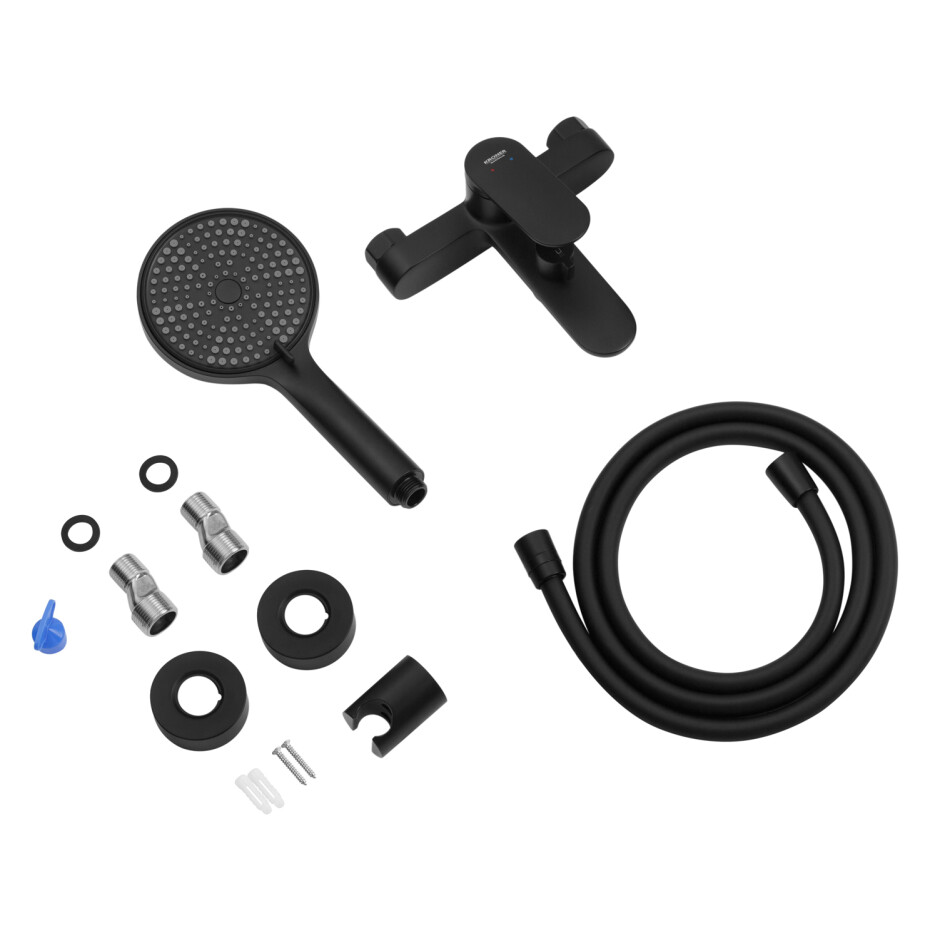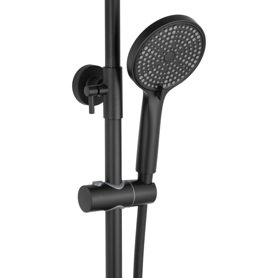У комплект входить душова система і змішувач, що дозволяє створити єдиний і гармонійний простір без необхідності підбору окремих елементів. Матова поверхня стійка до слідів води та відбитків пальців, легко очищається і довго зберігає акуратний зовнішній вигляд.