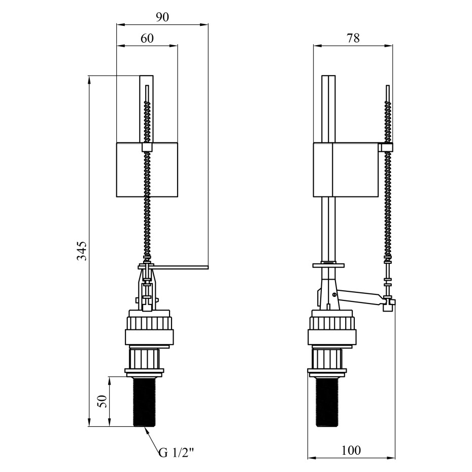 Дозволяє налаштовувати об’єм води в бачку. Вільне переміщення в склянці запобігає залипанню до стінок бачка.